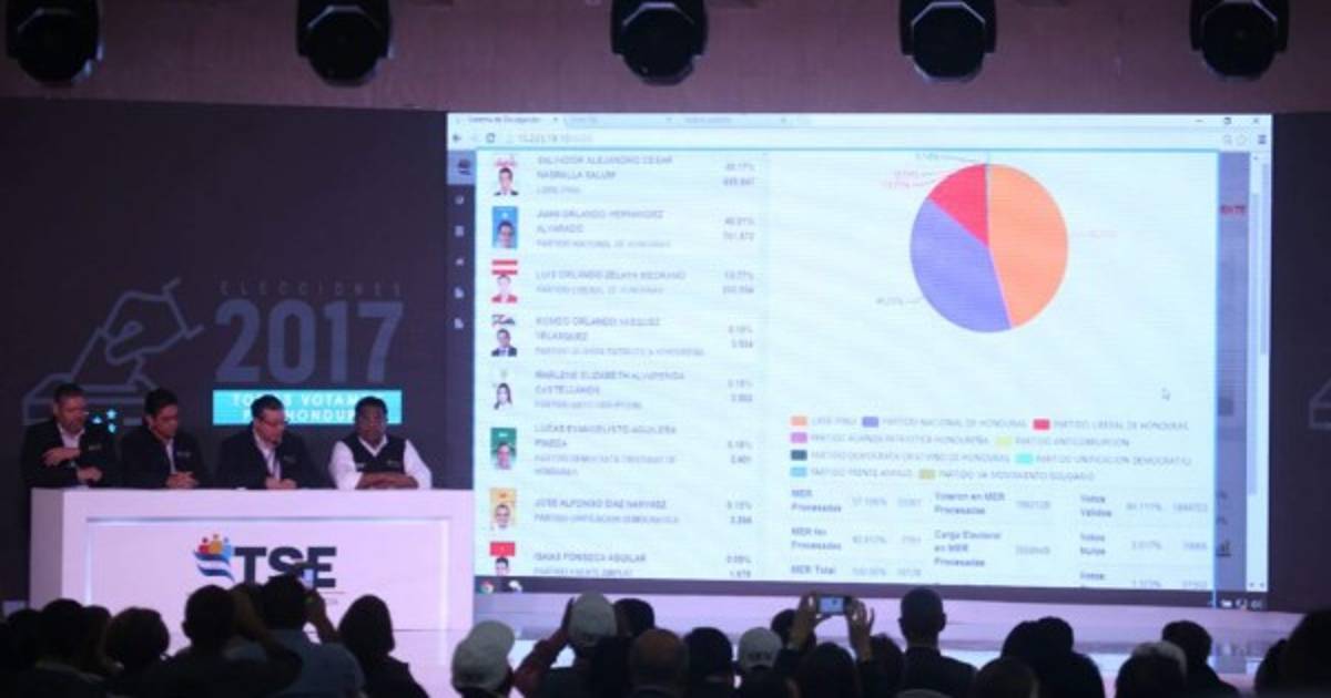 En el primer corte del conteo de votos, presentado por el TSE, 10 horas después del cierre de las urnas y con 57% de mesas escrutadas, Nasralla tenía 45.17% de los votos frente a 40.21% de Hernández. Ambos se habían proclamado vencedores antes del boletín oficial.