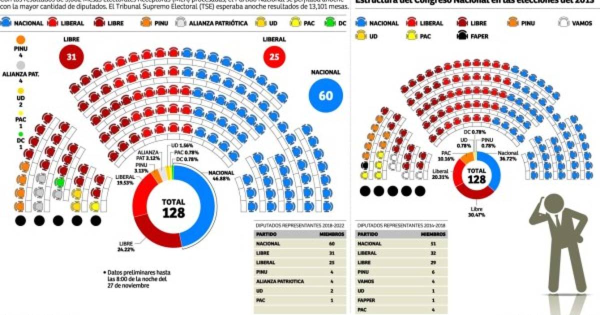 Los resultados preliminares del TSE, registrados hasta las 8:00 pm de ayer, indicaban que el Partido Nacional contará con 60 diputados, 11 más que los logrados en los comicios de 2013 (obtuvo 48).