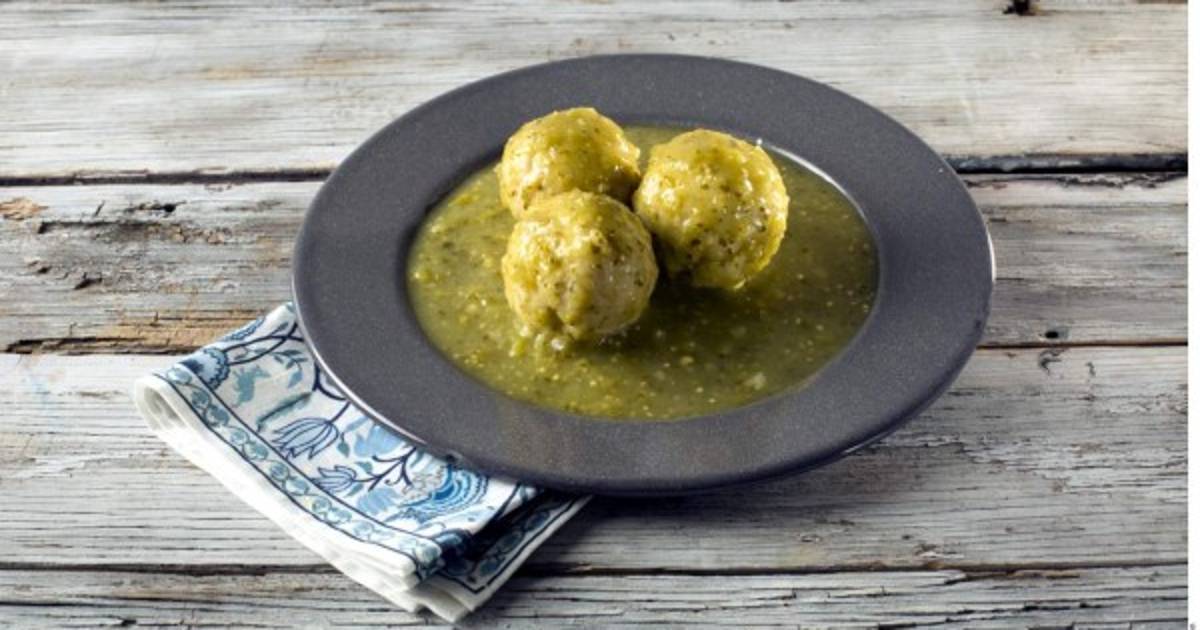 Licuar aparte los tomates, los chiles, la cebolla, el ajo y el cilantro con el caldo de pollo. Calentar el aceite a fuego medio en una cacerola y verter el caldo. Agregar las albóndigas y sazonar con sal. Cocinar hasta que la carne esté en su punto.