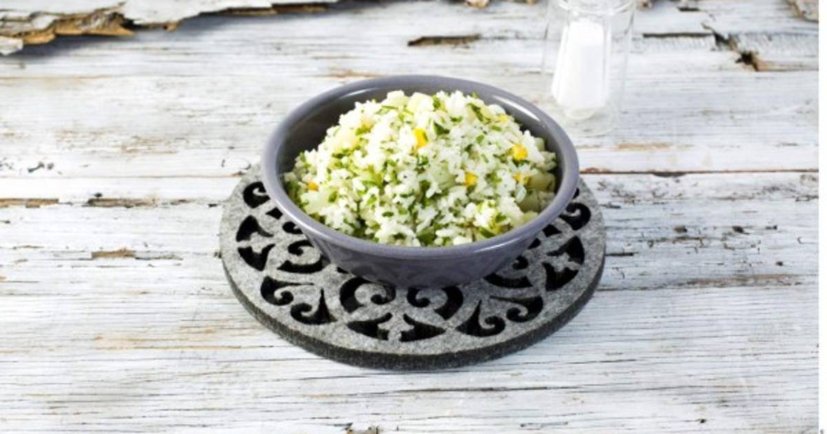 Remojar el arroz por 15 minutos, enjuagar. Sofreír el arroz en aceite y agregar la papa, perejil y granos de elote. Aparte, licuar cebolla, ajo y caldo, verter al arroz. Cocinar tapado a fuego medio por 15 minutos, retirar la tapa y terminar de cocinar.