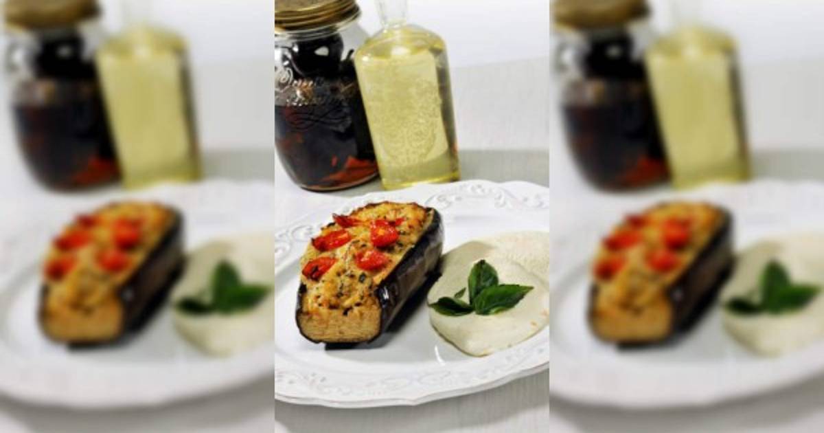Cortar las berenjenas por la mitad longitudinalmente. Dejar reposar en agua con sal por 20 minutos. Ahuecar las mitades de berenjena y picar el relleno.
