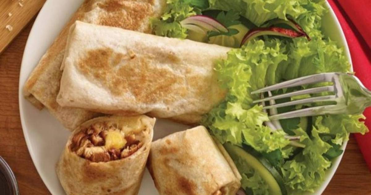 -Rellenar una tortilla con la mitad del pollo, una hoja de lechuga, 1 rebanada de Queso Americano, envolver y cortar a la mitad. Repetir con la otra tortilla
