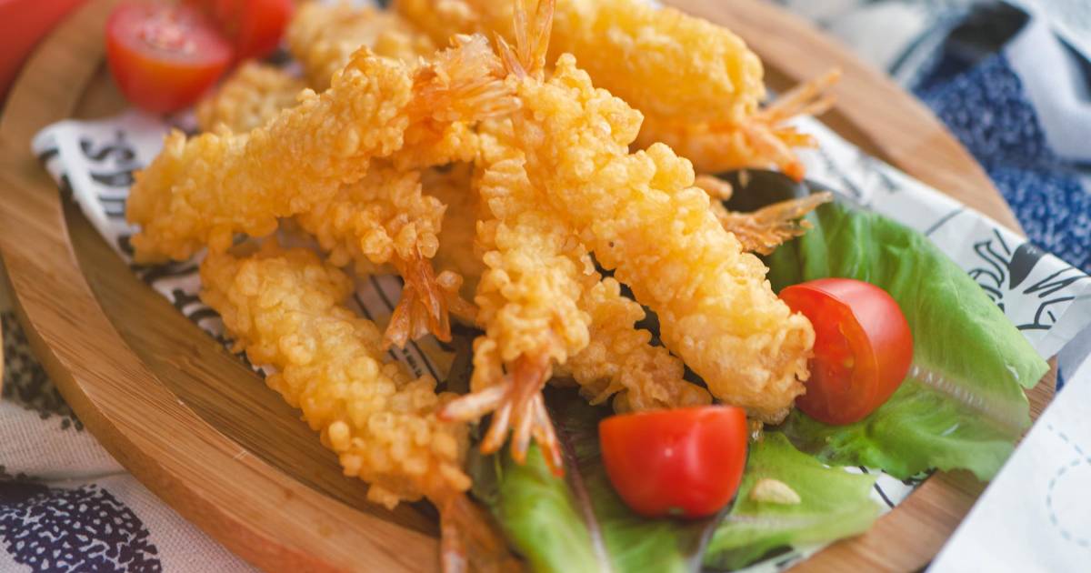 - Los alimentos deben cortarse en tamaños de uno o dos bocados y tenerse listos antes de hacer la masa. Los japoneses hacen cortes pequeños en la parte baja del camarón para que no se enrosque sobre sí.