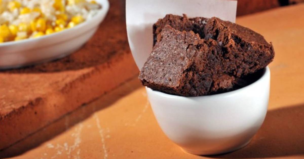 Derretir el chocolate a baño María con la mantequilla. Colocar en la batidora la crema, azúcar, huevos, harina y polvo para hornear. Colocar en una charola engrasada y hornear a 180° C por 25 minutos.