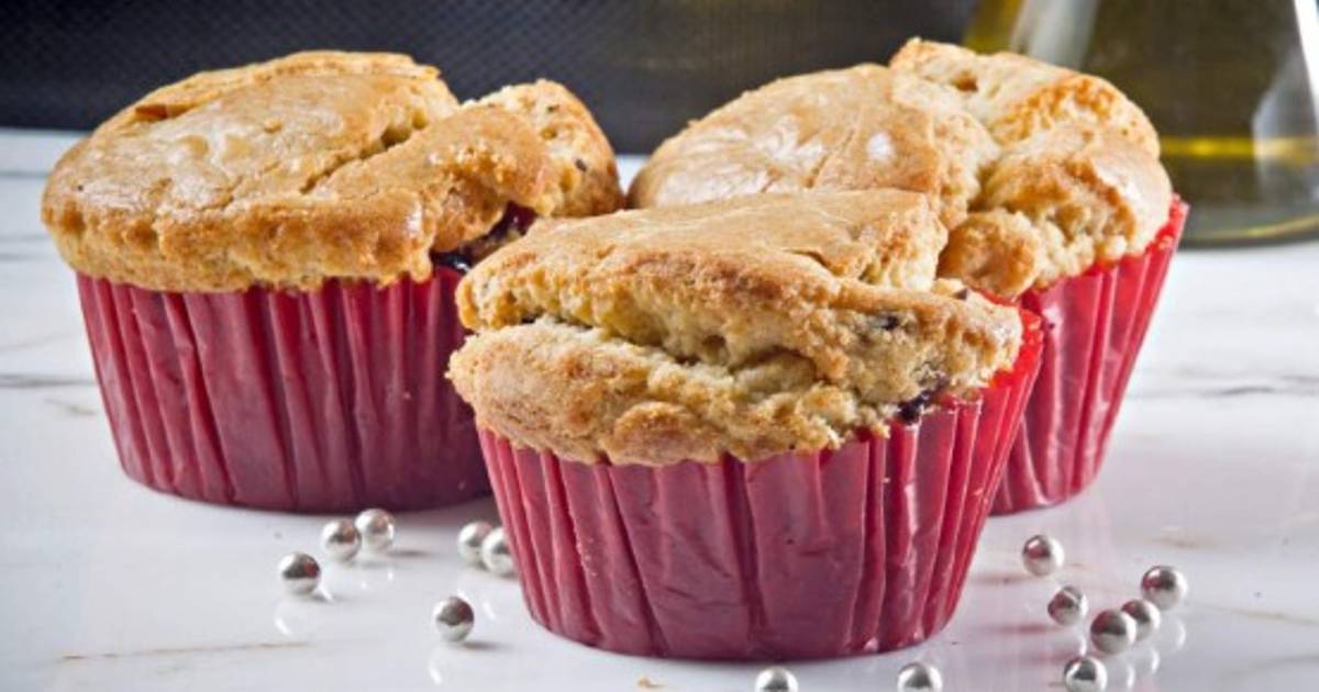 Batir los huevos con la azúcar e incorporar aceite de oliva sin dejar de batir. Integrar harina, polvo para hornear, arándalos y leche. Precalentar el horno a 170 °C. Verter la mezcla en 15 moldes para muffin con capacillos y hornear por 15 minutos.