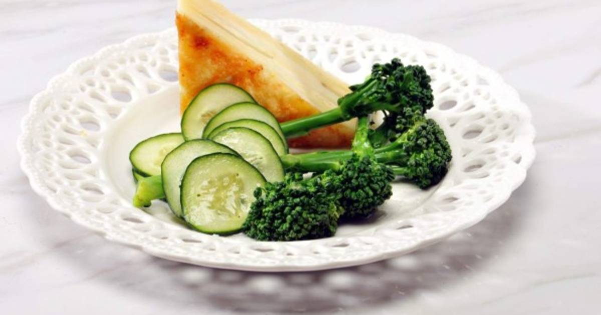 Hornear por 15 minutos a 165 °C. Acompañar con brócolis y pepinos.