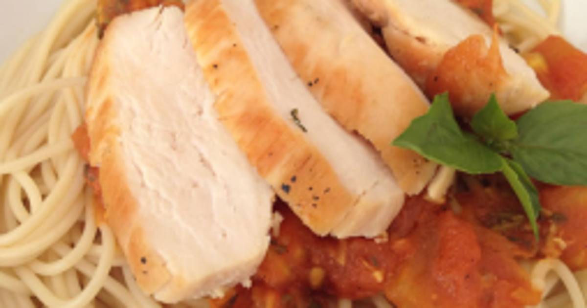 Una de las clásicas recetas que van acompañadas con salsa de tomate son las pastas agregando albahaca y tiras de pollo.