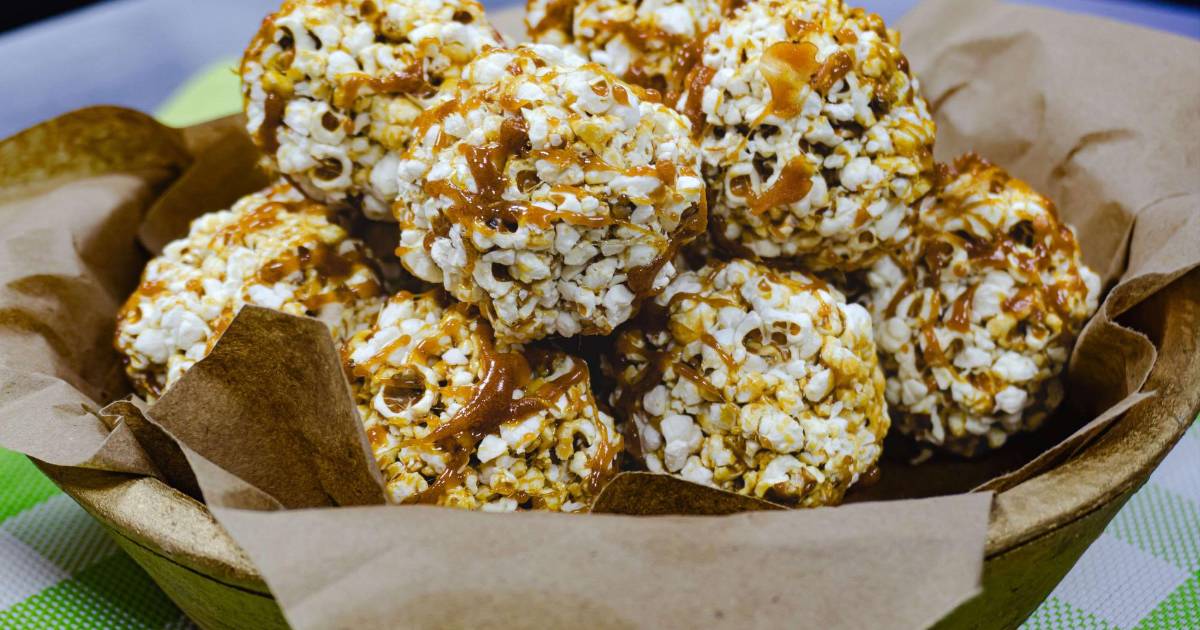 3/ Al reventar todo el maicillo verter en una bandeja extendida, agregar el dulce o almíbar de rapadura y formar las bolitas, bañar con más almíbar.