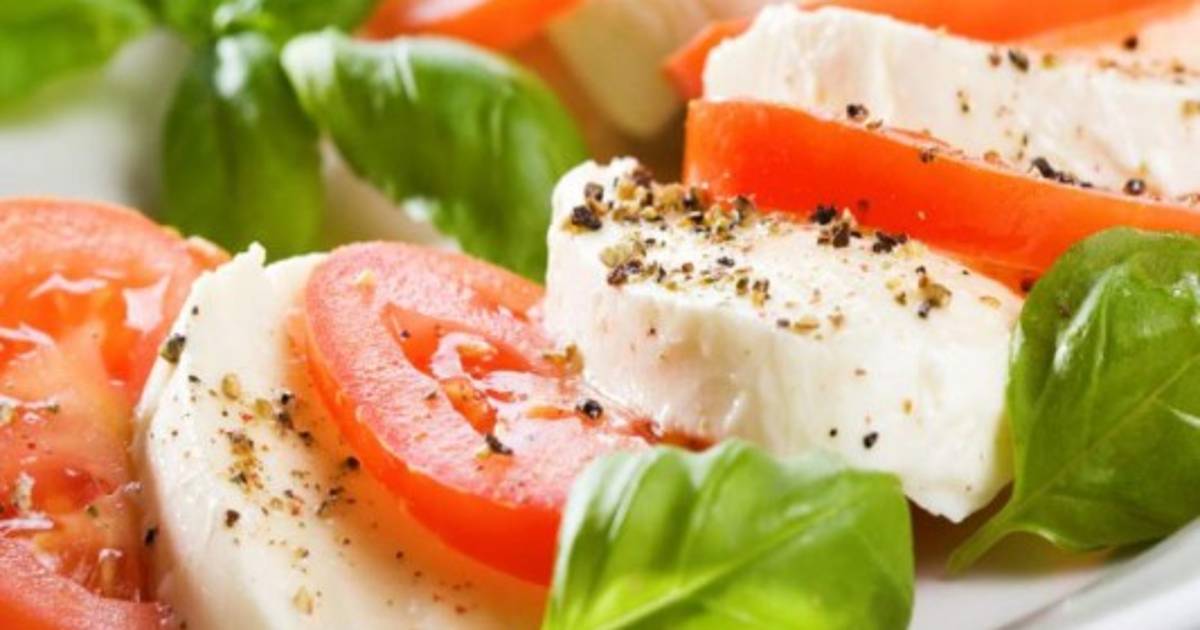 Ensalada caprese con aguacate y albahaca