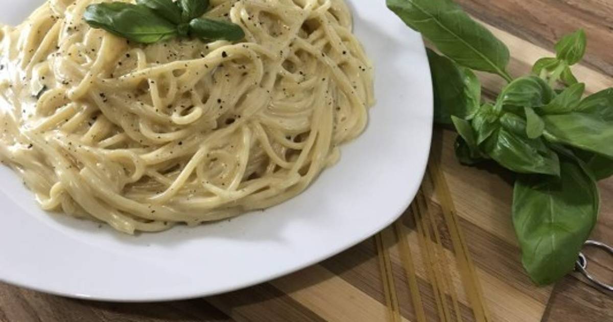 Añadir el ajo bien picado, la pimienta y las hojas de albahaca fresca picada. Cocinar hasta que espese. Agregar a la olla los espaguetis ya cocidos, remover y mantener en fuego durante dos minutos más. Sevir caliente.
