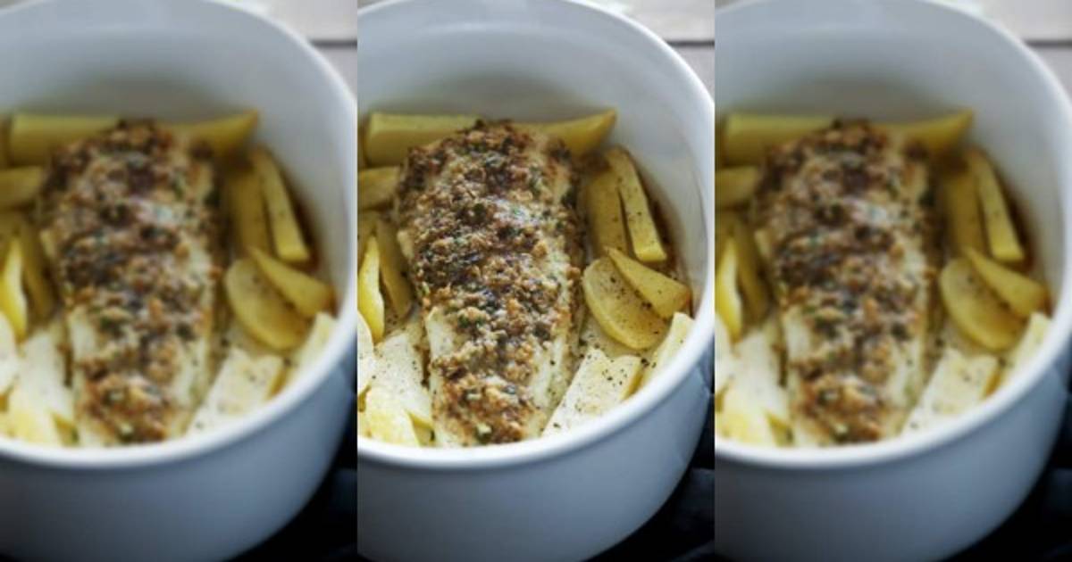 Dejar hervir hasta que se reduzca la sustancia del vino. Sirva el filete de pescado sobre una cama de papas al horno.
