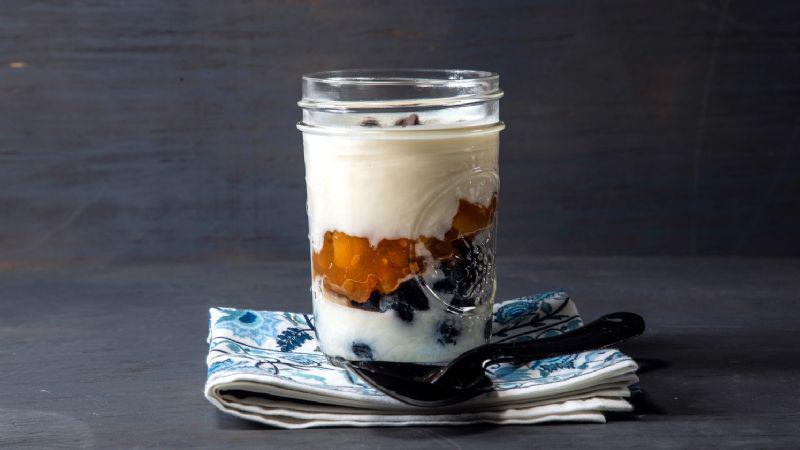 2. Disponer en un vaso una cama de moras, el dulce de guayaba y luego el yogur. Terminar con las chispas de chocolate.