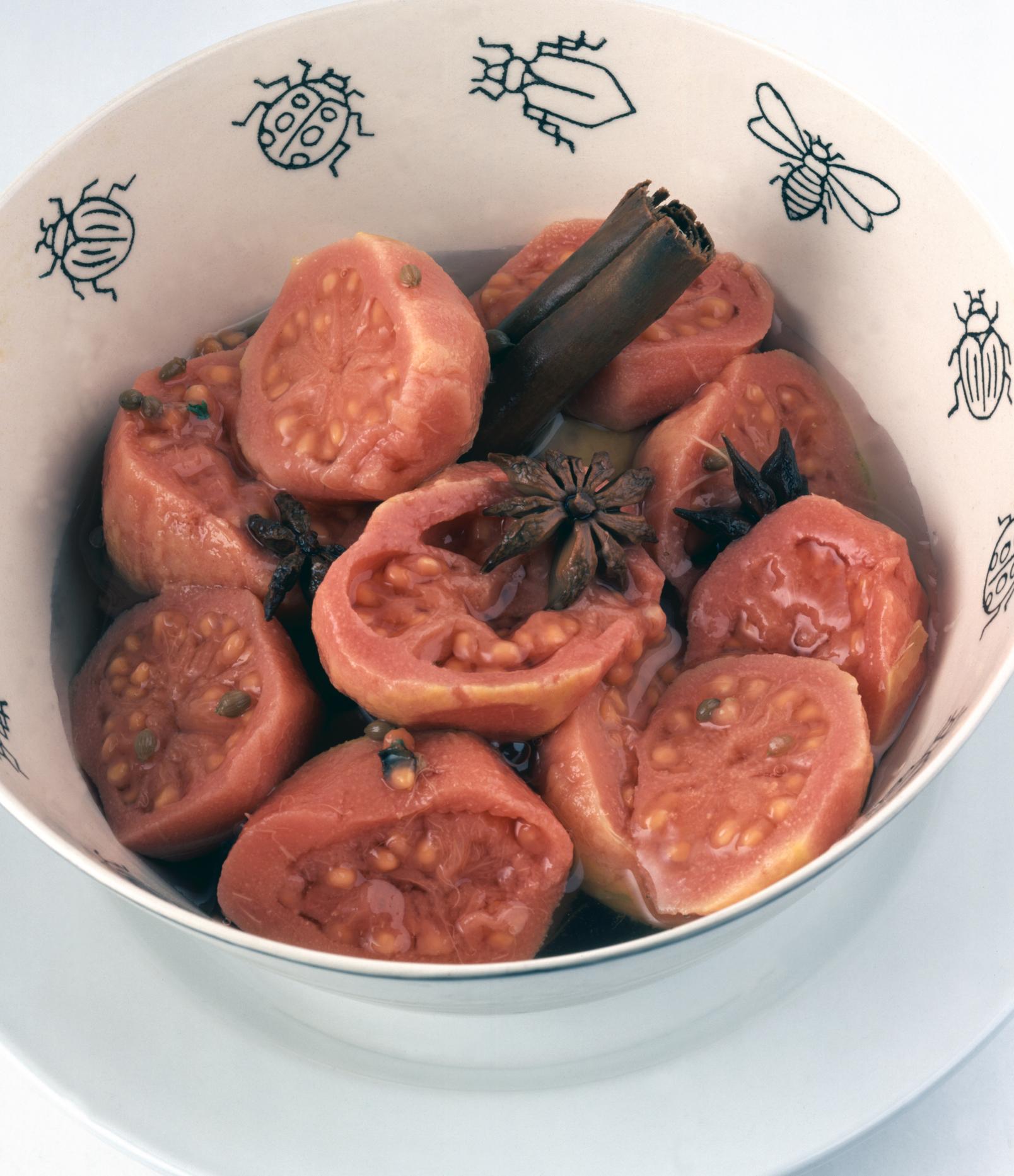 3. Agregar al jarabe la mandarina y las guayabas, estas últimas peladas y en mitades para que absorban el jarabe.