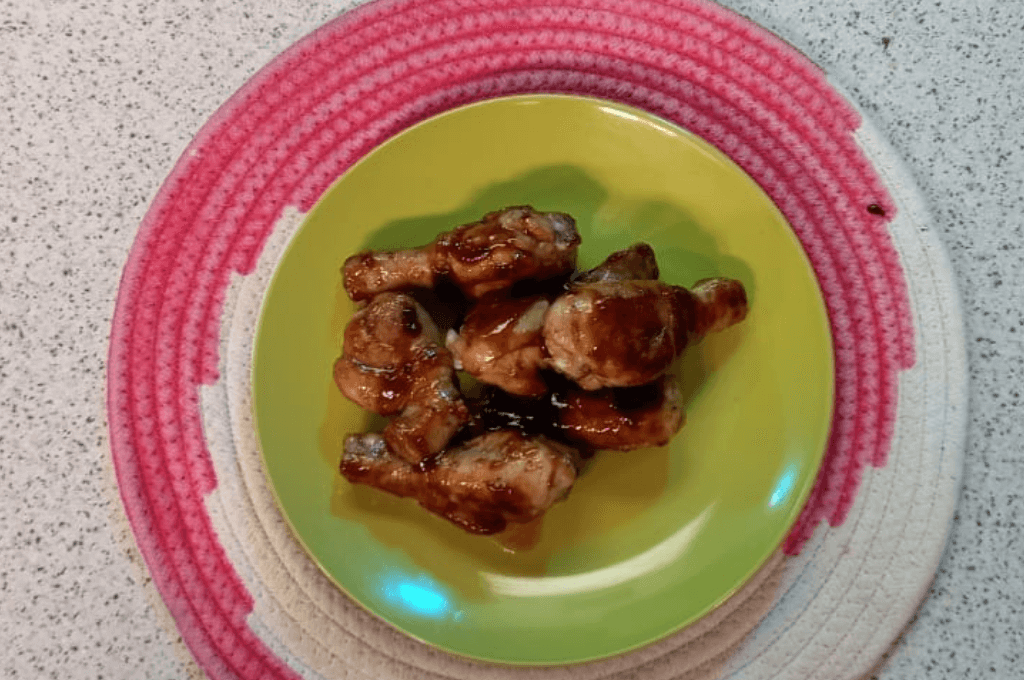 4. Brochar las piernas de pollo con la salsa y servir con un poco más de salsa para acompañar.