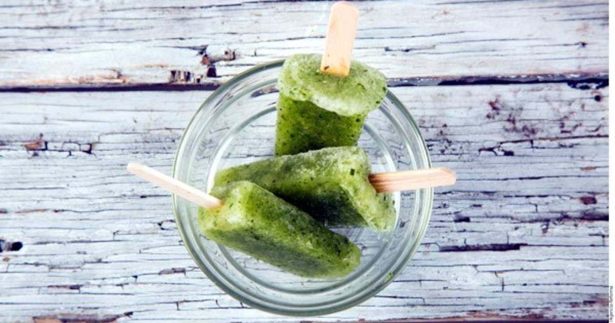 Calentar el agua con el azúcar hasta formar un jarabe. Dejar enfriar y licuar junto con el resto de los ingredientes. Verter el líquido en moldes para paletas y colocar el palo. Congelar y desmoldar.