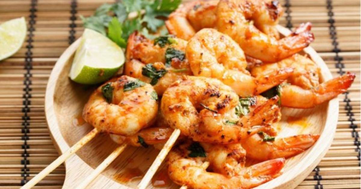 Precalentar la parrilla a fuego medio y colocar los pinchos, bañarlos de nuevo con la mezcla de aceite de oliva si es necesario. Cocinar de 2-3 minutos. Voltear y bañar con la mezcla restante, asar durante 2 minutos más o hasta que ya no esté transparente y rosado.