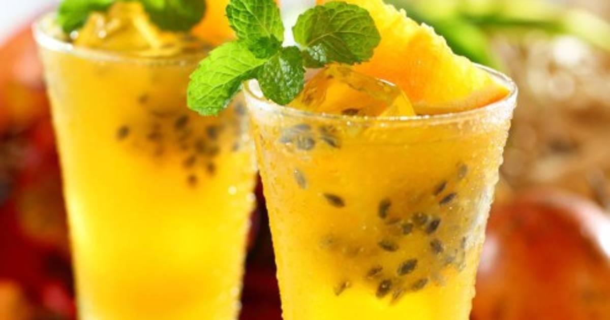 Licuar el jarabe con la pulpa de maracuyá y el jugo de limón; luego colar. Agregar el resto del agua y revolver bien; enfriar.