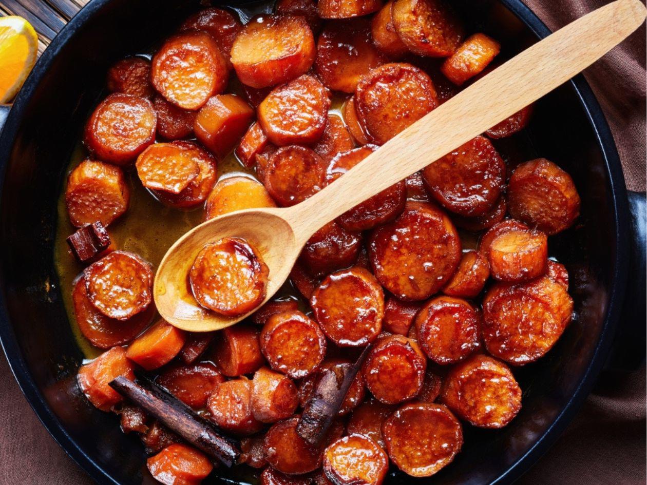 Aunque suele servirse como acompañamiento de platillos tradicionales, el camote caramelizado también puede disfrutarse como postre. Si buscas llevarlo al siguiente nivel, prueba servirlo con una bola de helado de vainilla o un toque de canela, lo que realzará aún más su dulzura natural y su textura cremosa.