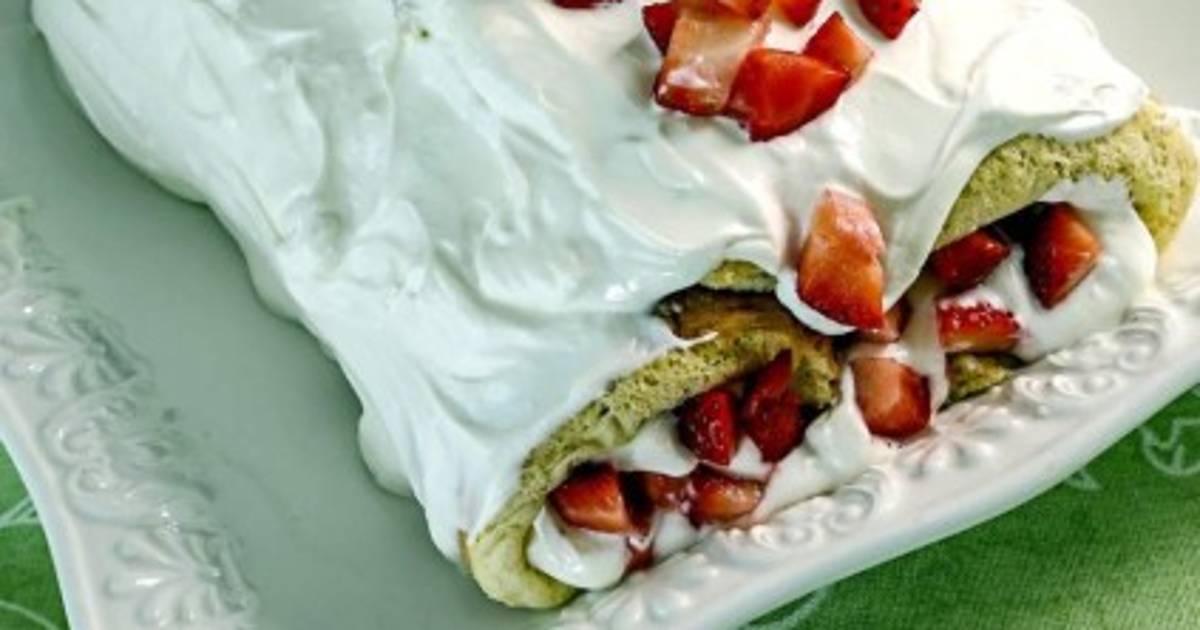 Aparte, en un tazón mezclar el yogur, la crema y el azúcar glass; después integrar las fresas y envolver con espátula. Cuando el pan esté frío, desenrollar y agregar la mezcla anterior.