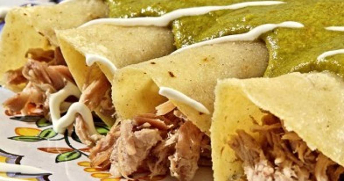 Cuando empiece a hervir, retirar y colocar en un lugar donde no se enfríe. Pasar las tortillas por una sartén con aceite bien caliente, rellenar con la carne y doblar.