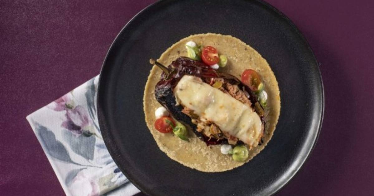 Montaje Rellenar los chiles con el atún. Colocar una rebanada de queso encima y gratinar. Servir sobre las tortillas calientes.