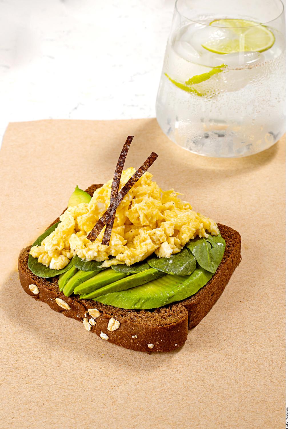 1. Tostar el pan. Rebanar el aguacate y disponer encima.