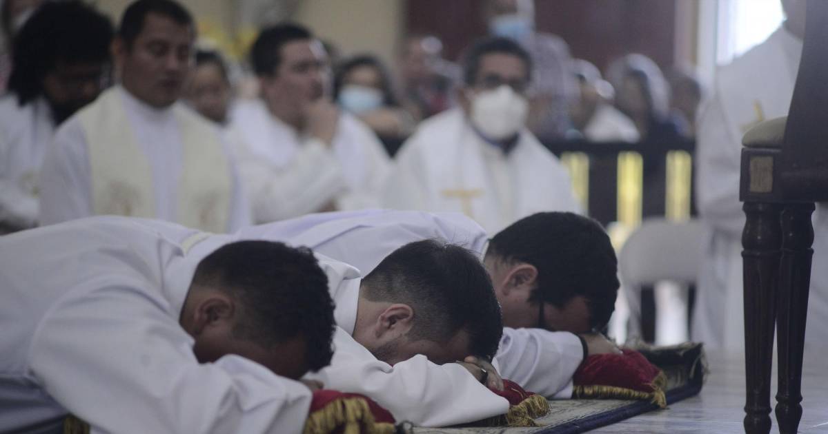 Los nuevos diáconos son Eduardo Enrique Ramírez, Óscar Alberto Funes y Marvin Enrique Guerra, quienes recibieron la última imposición de manos y oración consegratoria por el obispo Garachana , quien es el encargado de la diócesis de la ciudad.