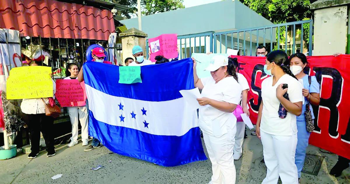Al grito de “que nos paguen, que nos paguen”, los empleados del Instituto Hondureño de Seguridad Social protestaron por falta de pago.