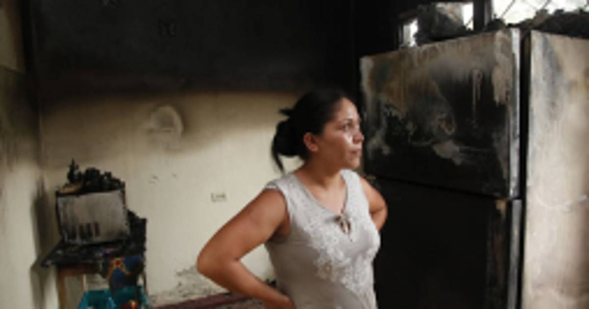 La afligida mujer atribuye el incendio a un cortocircuito provocado, según ella, por los apagones que se reportan en esa zona desde hace varias semanas.
