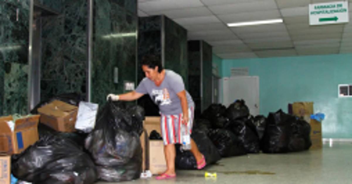 Con dificultad, Adilma García arrastra por el pasillo de Ginecología una bolsa grande de plástico negro que no pudo cerrar del todo por el exceso de basura que contiene. Es iniciativa suya