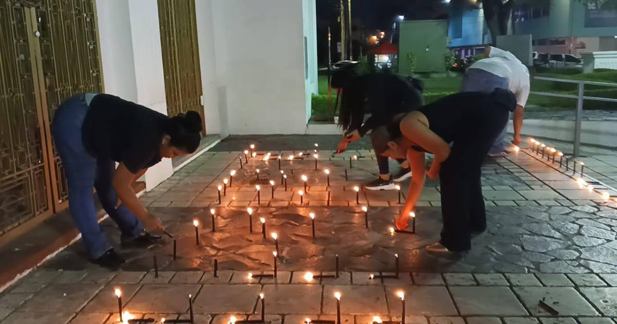 Con velas encendidas frente a la alcaldía de San Pedro Sula un grupo de jóvenes y exempleados protestan porque consideran que murieron las libertades en la municipalidad sampedrana entre ellas la libertad de expresión.