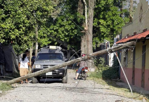 Personal de la Enee trabaja para reestablecer el servicio y comenzar las reparaciones de los postes de energía.