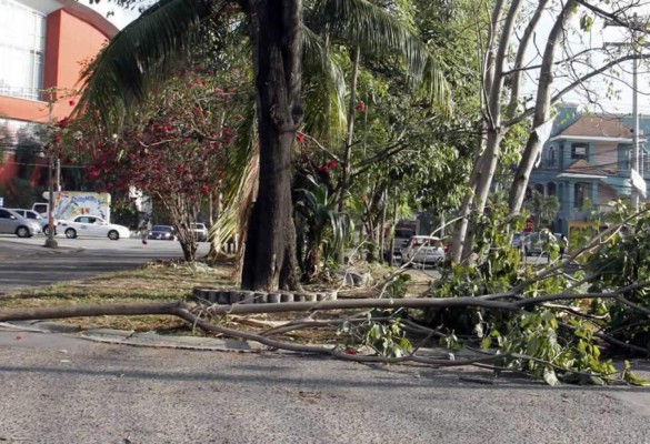 En San Pedro Sula, norte, y Tegucigalpa, centro, las dos ciudades más importantes del país, se han registrado caídas de árboles, voladuras de techos de viviendas, tendidos eléctricos y rótulos publicitarios, entre otros daños, que aún no han sido cuantificados.