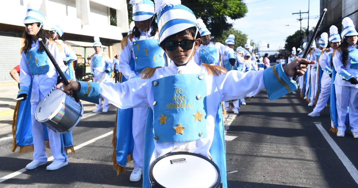 En total, fueron 32 colegios los que desfilaron por la tercera avenida y tomaron la primera calle hasta llegar a inmediaciones del Estadio Morazán frente a las autoridades municipales las que les hicieron un ‘show’ final.