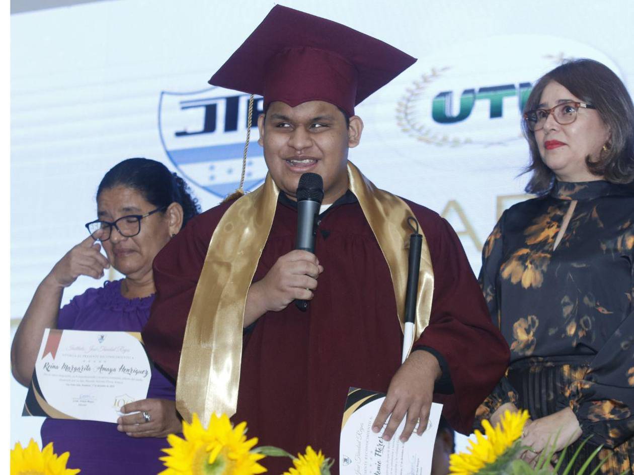 “El instituto José Trinidad Reyes otorga el presente reconocimiento a Reina Margarita Amaya por su amor inagotable, su fe inquebrantable y su apoyo constante, pilares fundamentales del sueño alcanzado por su hijo Marcelo Antonio Flores Amaya”, destacó el director.