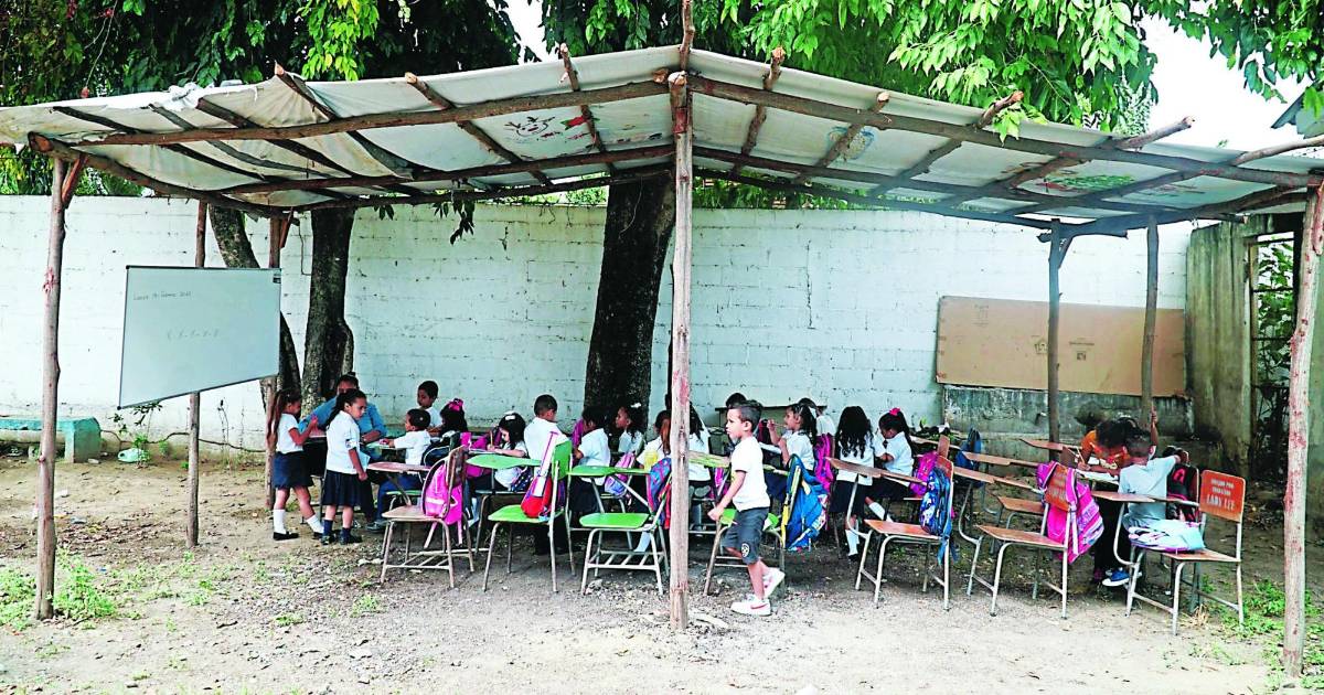 En ese sentido el centro, a pesar que cuenta con 7 aulas, no tiene las suficientes para que estos niños de primer grado reciban sus clases en un aula. Los padres construyeron esa champa con unos palos y unos toldos, pero es una estructura sencilla y ayer los niños sintieron las gotas de lluvia sobre su cabeza.