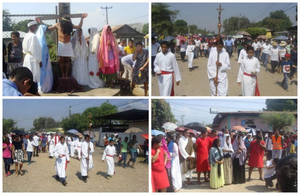 En Olanchito, Yoro bajo un fuerte sol los feligreses acudieron al viacrucis que inicio en la iglesia católica y concluyo en la cruz del perdón en la salida Agalteca, Hugo Lemus cura párroco de esta ciudad encabezo la procesión.