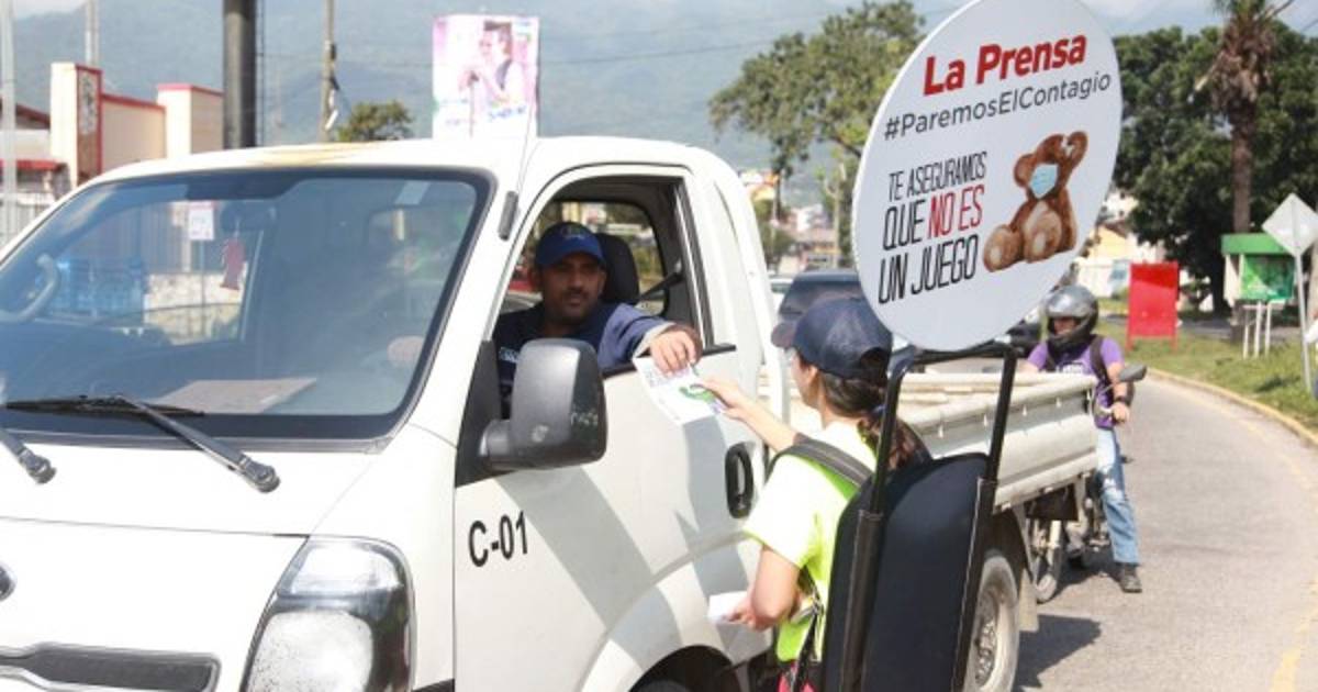 En varios puntos de la ciudad, como los semáforos del Monumento a la Madre, Fuente Luminosa, 105 Brigada de Infantería, hotel Hyatt, escuela María Mazzarello, bulevar Roberto Micheletti y varias gasolineras, colaboradores de LA PRENSA hicieron conciencia de la necesidad de atender las medidas para prevenir el contagio del coronavirus del que ya hay casos confirmados en Honduras.