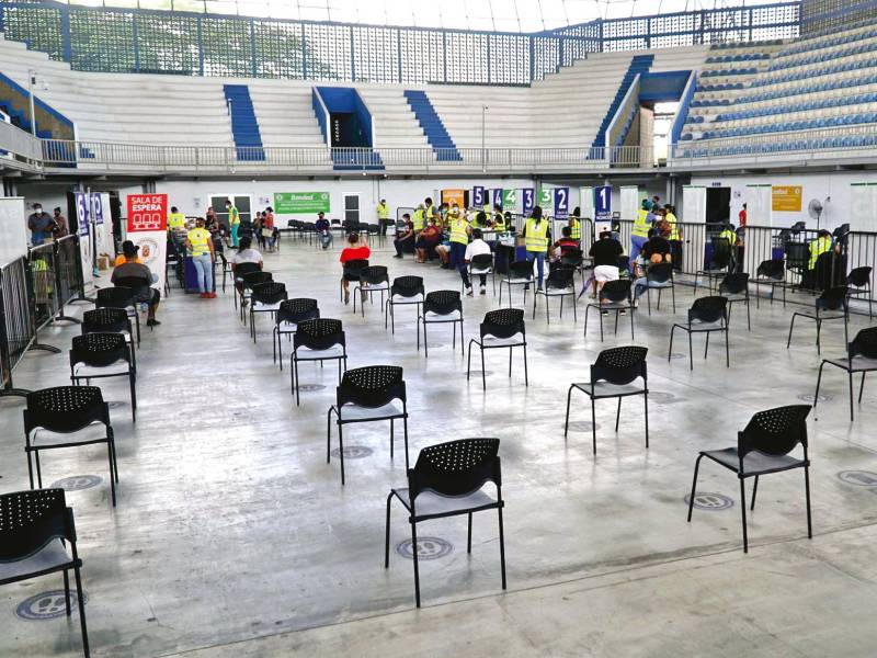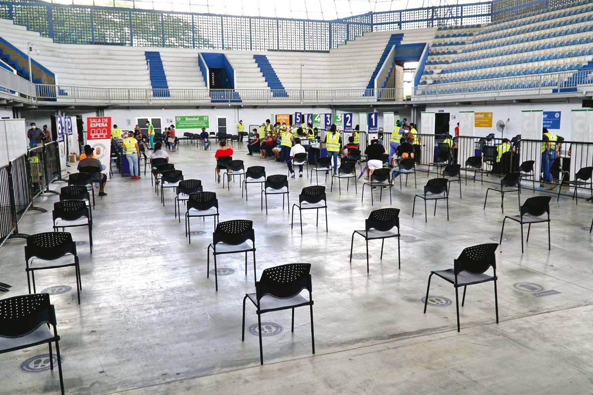 SAN PEDRO SULA. El Gimnasio Olímpico se ve vacío al igual que el resto de los sitios de vacunación, es por ello que las autoridades sanitarias hacen el llamado a los sampedranos para que acudan a inmunizarse.