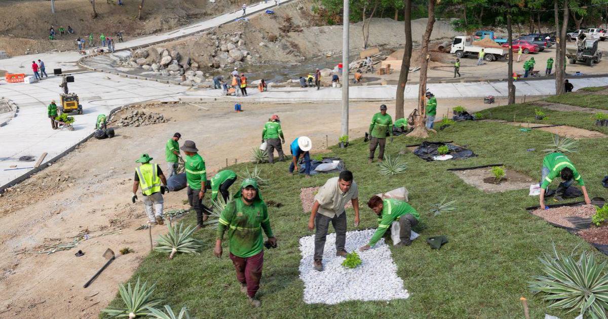 Durante estos días, los equipos municipales han avanzado con labores complementarias como el pintado de bordillos, instalación de señalización, colocación de luminarias y trabajos de ornato, que incluyen siembra de grama y plantas decorativas. El alcalde informó que se están colocando más de 1,500 metros de grama en el área.