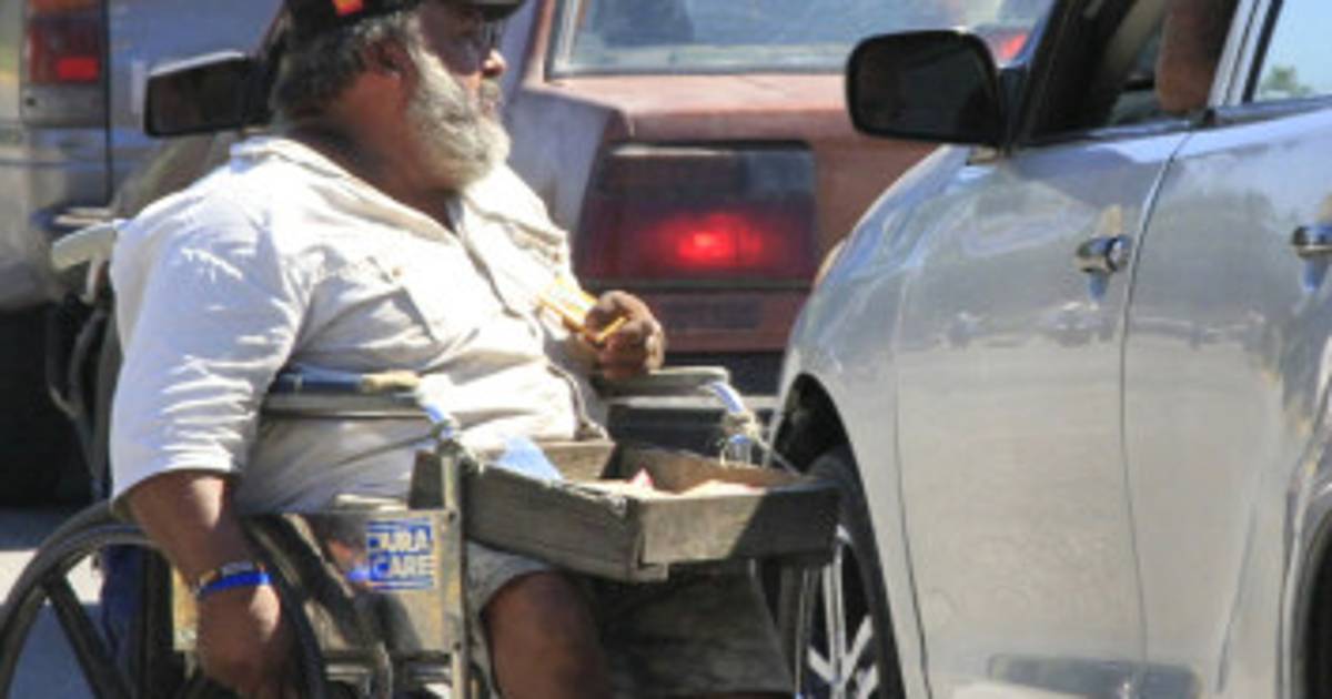 Su piel oscura confirma que este hombre pasa 10 horas bajo los rayos solares. Su sacrificio va más allá de una piel quemada, sus manos encallecidas por la silla de rueda le recuerdan que debe cambiar las llantas, pero no ha recogido lo que necesita.
