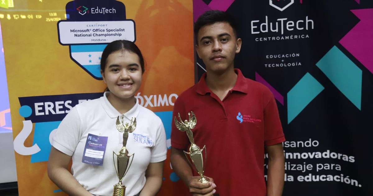 Sofía Osorio y José Anthoni López son dos estudiantes ejemplares, que este jueves ganaron la competencia nacional de Microsoft Office organizada por EduTech, así como el pase para viajar a California en julio, donde representarán a Honduras en la Competencia Mundial de Especialistas en Microsoft Office.