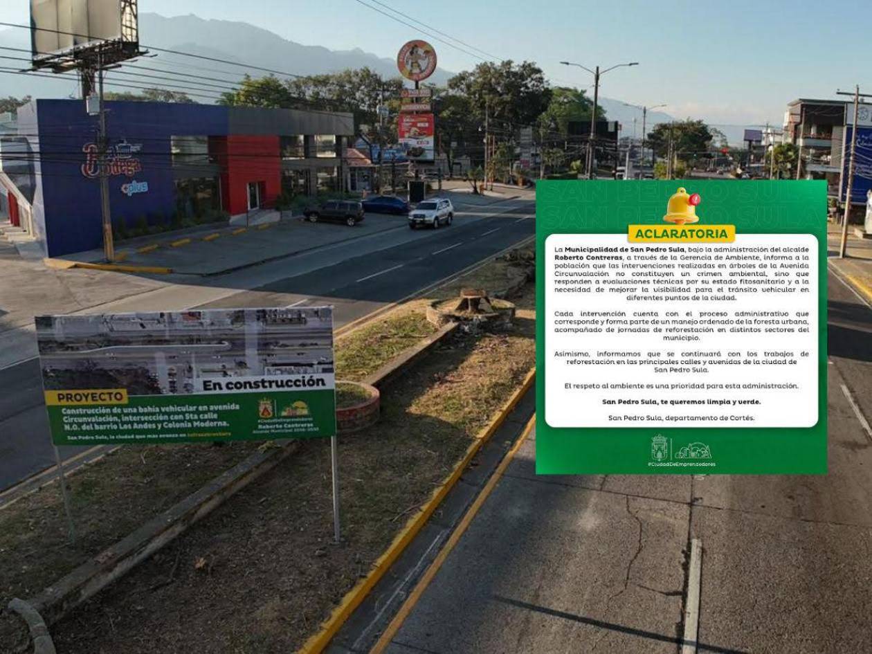 Textualmente, señala: “La municipalidad sampedrana, bajo la administración del alcalde Roberto Contreras, a través de la Gerencia de Ambiente, informa a la población que las intervenciones realizadas en árboles de la avenida Circunvalación no constituyen un crimen ambiental, sino responden a evaluaciones técnicas por su estado fitosanitario y a la necesidad de mejorar la visibilidad para el tránsito vehicular en distintos puntos de la ciudad...”.