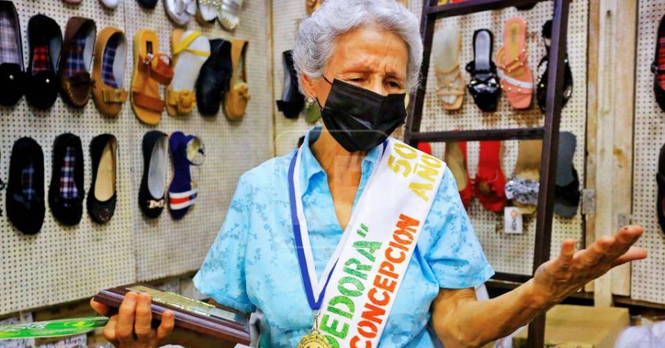 La bisabuela oriunda de Florida, Copán, pero sampedrana de corazón, tiene 50 años de vender zapatos de fabricación hondureña en un puesto en el interior de ese mercado, algo que para ella es una bendición y que abandonará hasta que Dios la llame a su presencia.