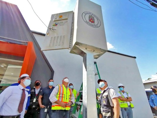 Once intersecciones de semáforos inteligentes fueron habilitadas ayer en la 7 calle, 1 y 4 avenida noroeste del barrio Barandillas de San Pedro Sula por autoridades municipales.