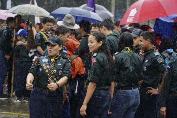 Sin importar la lluvia, ellas junto a otros 800 scouts sampedranos caminaron ayer por la primera calle desde el parque central hasta el parqueo del Comisariato Los Andes para conmemorar la existencia de su organización y darse a conocer a la población.