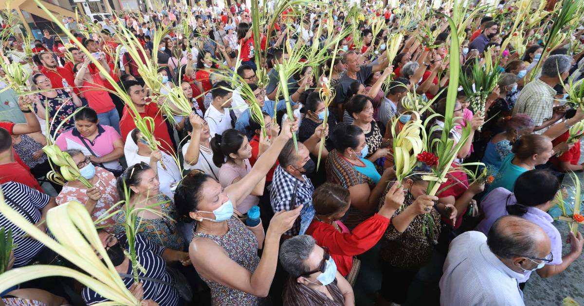 Este fue el primer año, tras la pandemia, que los católicos participaron en todos los actos tradicionales, que iniciaron con la bendición de los ramos y palmas en el instituto María Auxiliadora.