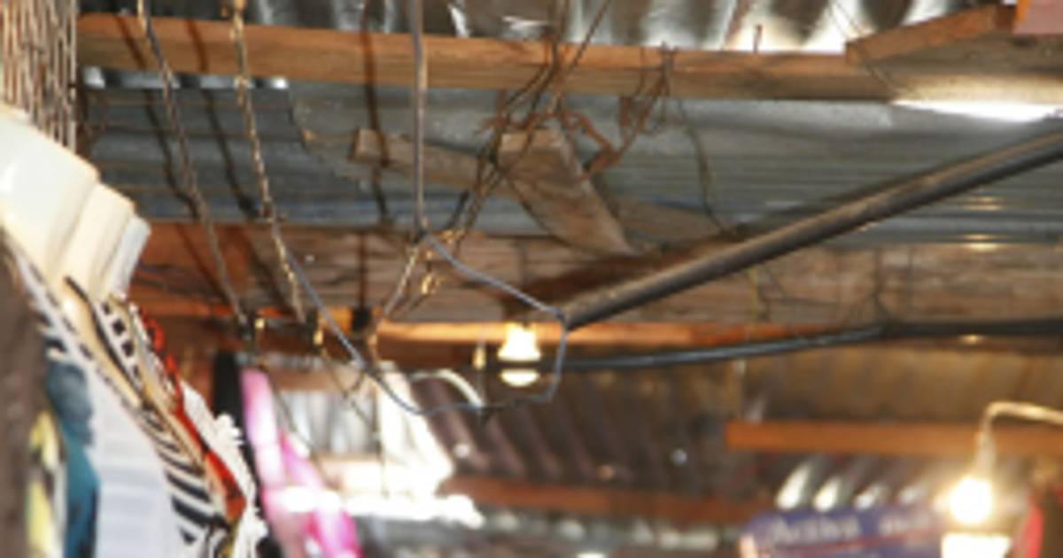 Las conexiones eléctricas en mercado El Centro están remendadas con cinta adhesiva negra. Los locatarios reconocen que es un peligro, pero aducen que necesitan la luz para poder trabajar, pues “el hambre no conoce miedos”.