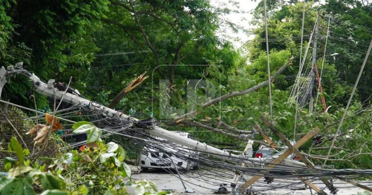 En San Pedro Sula, en muchas ocasiones, sobre todo con fuertes lluvias, vehículos han sido dañados por la caída de árboles; pero también de postes saturados por los cables que han terminado cediendo.