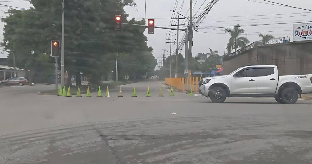 En el semáforo de la 25 calle se han colocado conos y el tráfico lo coordinan los policías municipales.